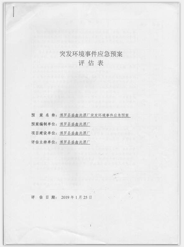 已制訂《博羅縣盛鑫洗漂廠環(huán)境風(fēng)險評估報告》,并于2019年1月25日上報博羅縣環(huán)境保護(hù)局備案;