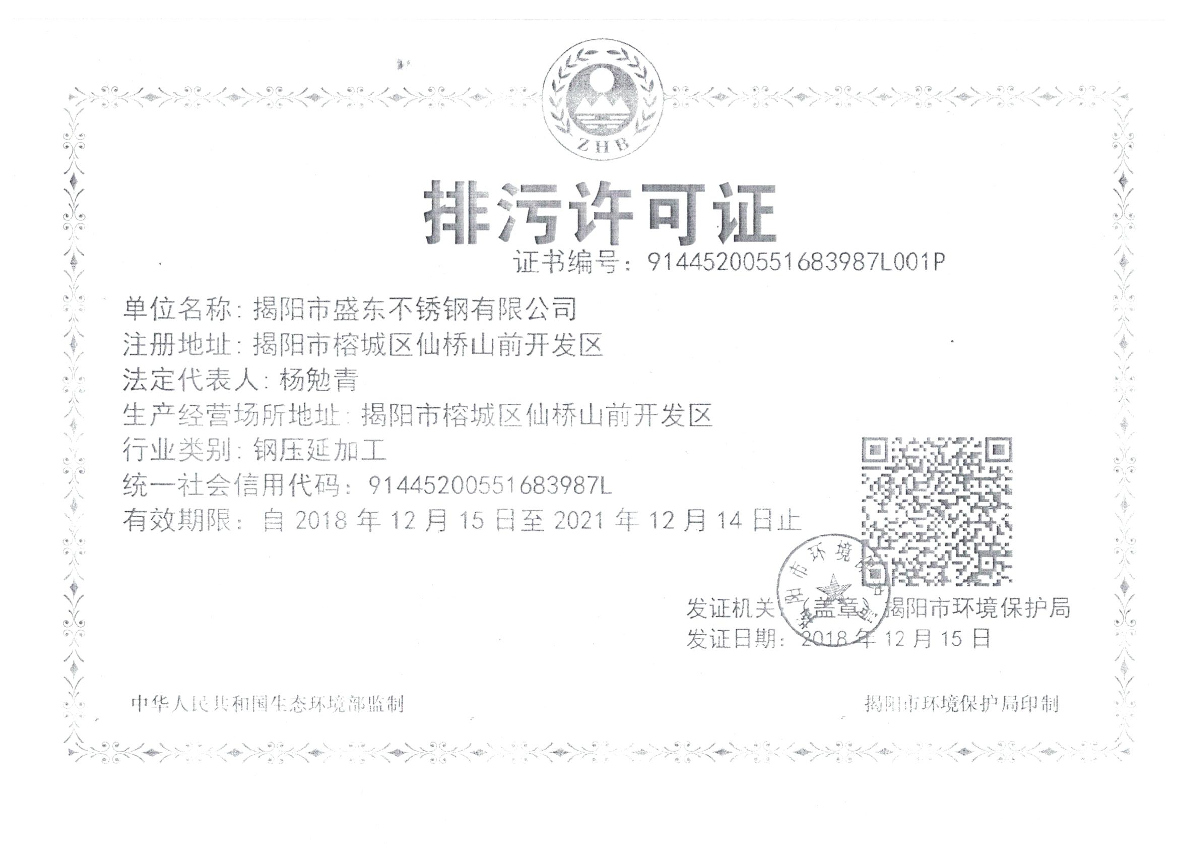 揭陽市盛東不銹鋼有限公司是一家專業(yè)從事不銹鋼壓延加工的企業(yè),位于揭陽市榕城區(qū)仙橋山前開發(fā)區(qū),成立于2010年3月9日,設(shè)計(jì)年加工生產(chǎn)不銹鋼板材470噸。公司2011年3月通過環(huán)保三同時(shí)驗(yàn)收,2017年5月通過環(huán)保二期驗(yàn)收,2018年5月通過環(huán)保部完成突發(fā)環(huán)境事件應(yīng)急預(yù)案備案。 |
